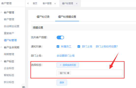借助耀世注册SCRM梳理僵尸粉,当客户删除员工后,给这个客户自动打上“标签”,标签由商家自定义。通过该功能可以帮助员工快速找到自己的僵尸粉并清除,大大提高了员工工作效率。