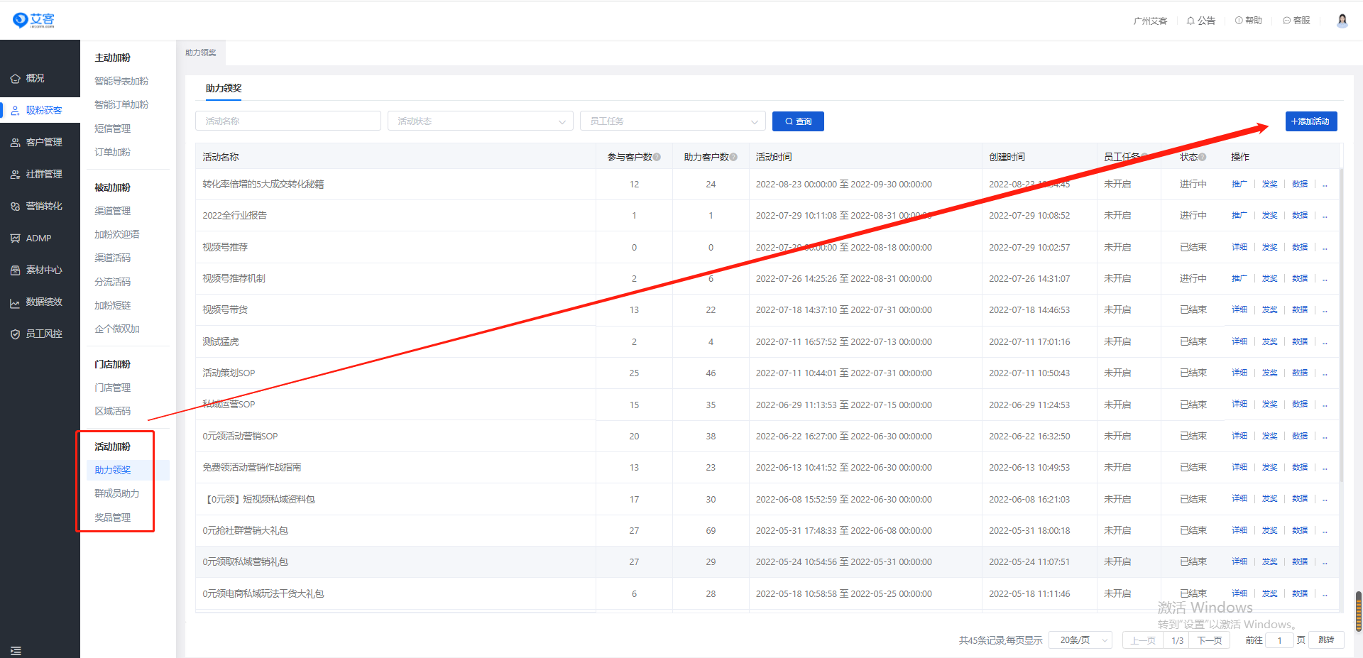 商家可以设置好友/群裂变任务,并通过各个渠道(欢迎语、侧边栏快捷回复、用户精准推送、群精准推送、公众号群发等各个渠道)分发给好友或其他潜在用户进行裂变拉新。
