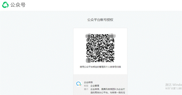 3)使用公众号平台绑定的管理员微信号扫码授权