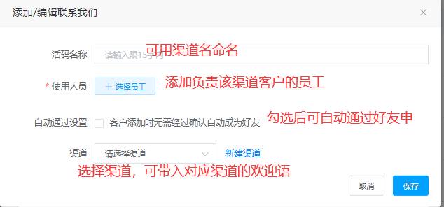 主要用于添加渠道,进行分类管理,便于后续针对不同渠道设置不同的引流码以及欢迎语等