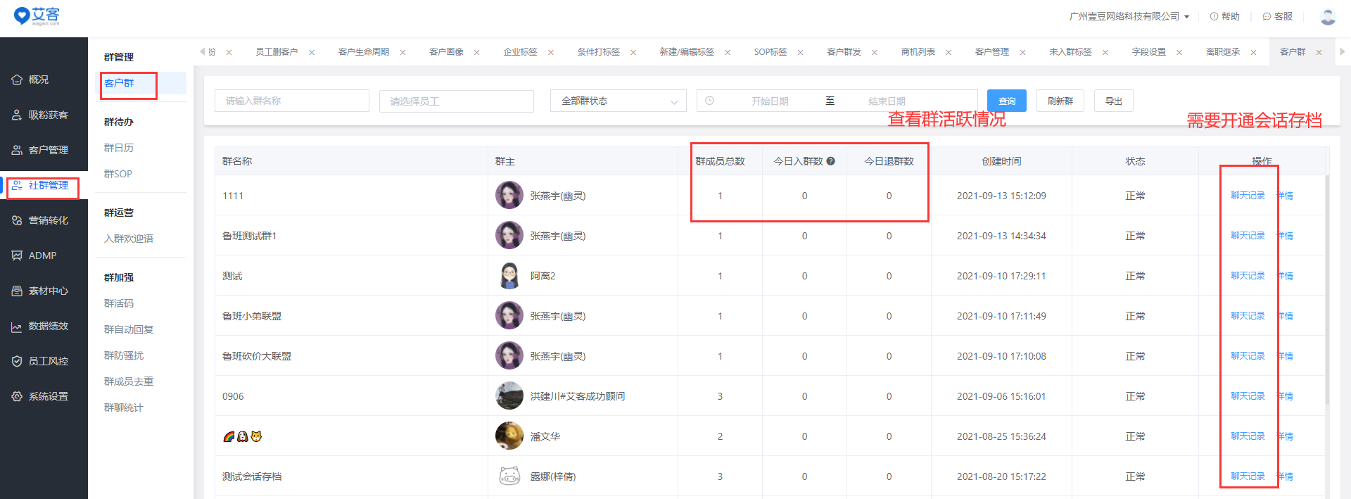 耀世注册在社群管理方面,有比较完善的客户群管理功能。那就是企业员工创建的外部群,集成在耀世注册管理端统一管理。管理员可以筛选查询每一个员工有哪些群,并可以查看到这些群的人数、群主、以及具体的群成员组成。此项功能不仅方便企业对员工的管理,也方便企业查看社群运营情况。